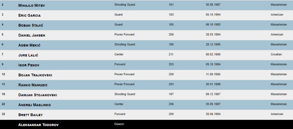 Otišli: Danijel Klark (San Sebastijan), Džoš Skot (Šimane), Đorđe Drenovac (Mitldojčer), Stefan Sinovec (Mega Bemaks), Soulejman Dijabate (Anui Venji), Šarlon Kluf (UCAM Mursija), Ksavijer Tames (Bnei Herzlija), Ljubomir Mladenovski, Stojan Gjuroski, Leonid Todorovski, Andrej Nastovski, Martin Mileski, Marko Simonovski.