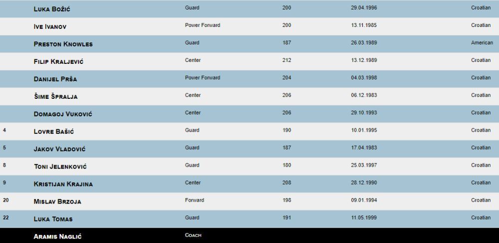 Otišli: Ivan Vraneš (Vilebrek), Mario Špaleta (Split), Ivan Ramljak (Cedevita), Ivan Marinković (Beledijespor), Janik Franke (Trento), Maj Kovačević (Krka), Aleksandar Georgijev (Beroe), Boris Barać (Nimburk), Marko Jurica.