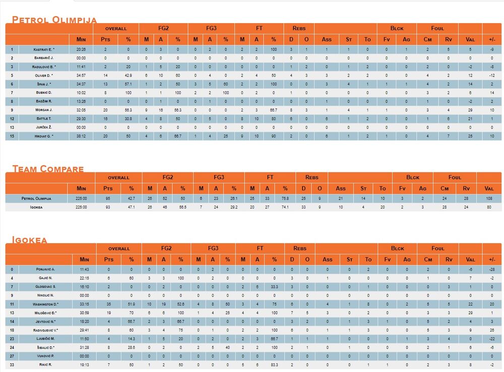Poslednji put Igokea je bila u egalu na 89:89 a nakon toga Olimpija više nije dozvolila da se momci iz Republike srpske vrate