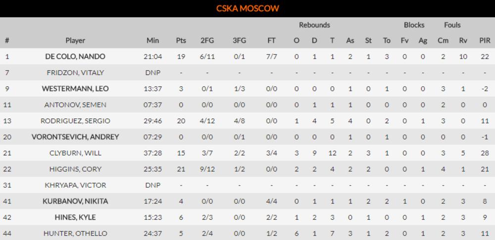 Higins je igrač sa najviše poena na utakmici koju je završio sa 21 poenom. Serhio Rodrigez će očigledno biti dostojna zamena Milošu Teodosiću, jer je na današnjem meču postigao 20 poena. Pratio ga je De Kolo sa 19 ubačenih koševa.