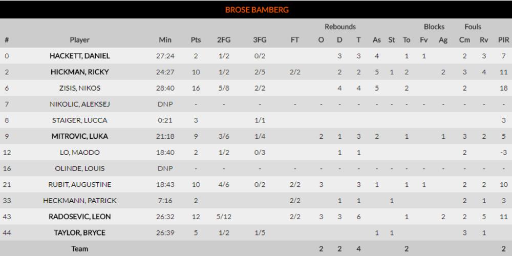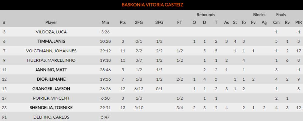 Tornike Šengelija predvodio je goste sa 13 poena, jedan manje postigao je Džejson Grejndžer. Johanes Vojtman dodao je 11, a Marselinjo Uertas još 10 poena.