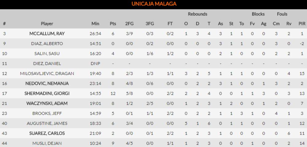 A najveće iznenađenje dana predstavlja poraz Fenerbahčea u Malagi! Unikaha je nadigrala prvaka Evrope sa 68:67! Giorgi Šermadini je bio najefikasniji sa 12 poena, a pratili su ga Dragan Milosavljević, Nemanja Nedović i Adam Vaščinski sa po osam poena. Kod Žocove ekipe istakli su se Kostas Slukas sa 15 poena i sedam asistencija, Luiđi Datome sa 13 i Jan Veseli sa 12 poena i osam skokova. Nikola Kalinić je i dalje van stroja.