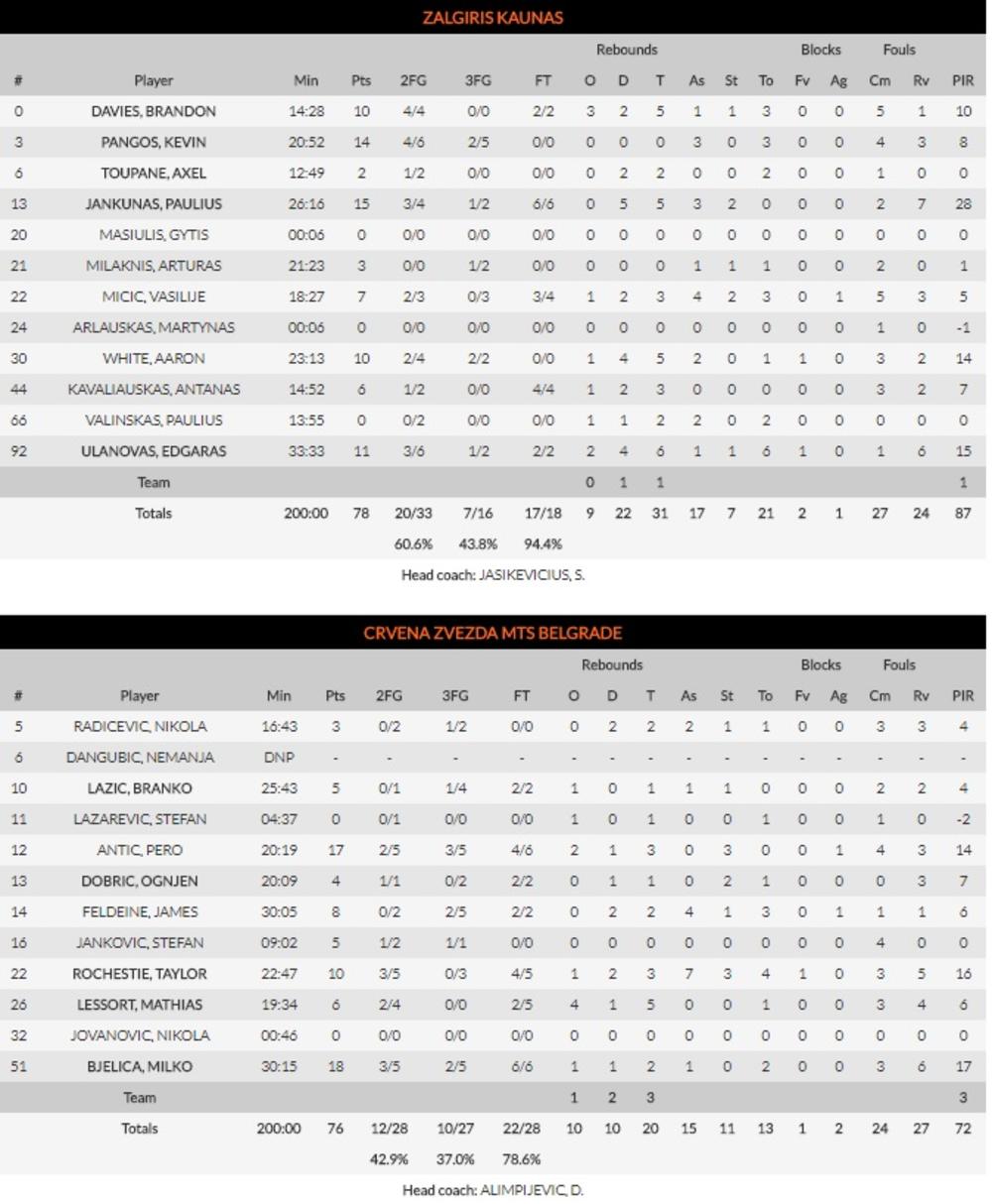 Kod domaćih najefikasniji je bio Jankunas sa 15 poena, Pengos je dodao 14, a Vajt 10 koševa.