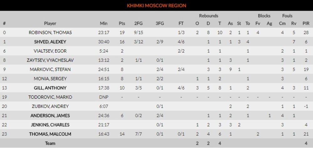 Tomas Robinson bio je najefikasniji u ruskom timu sa 19 poena i 10 skokova, Aleksej Šved postigao je 16, a Malkolm Tomas 14 poena uz šest skokova.
