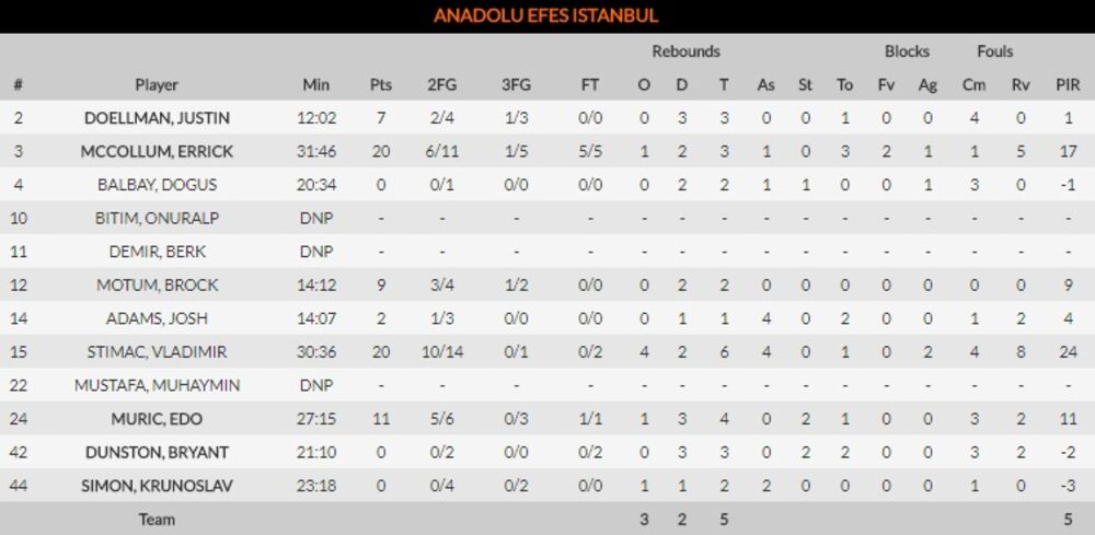 A u poslednjem meču da na Valensija je na svom terenu savladala Efes i to rezultatom 78:69.