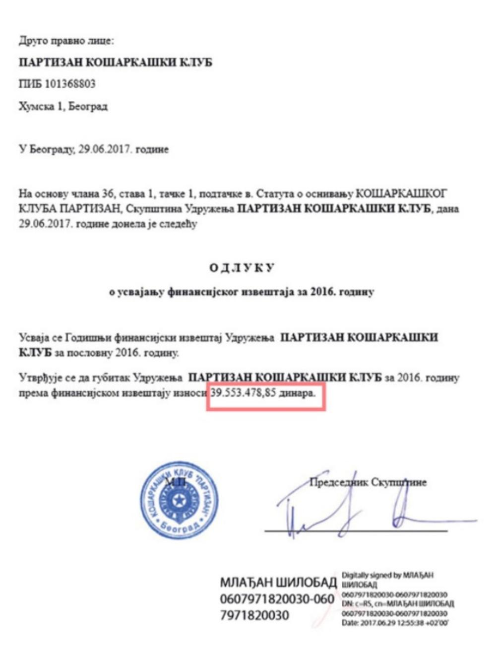 Finansijski izveštaj Partizana za 2016. pokazuje gubitak od samo 300.000 evra, pa se postavlja pitanje šta je sa ogromnim dugovanjima koja klub ima
