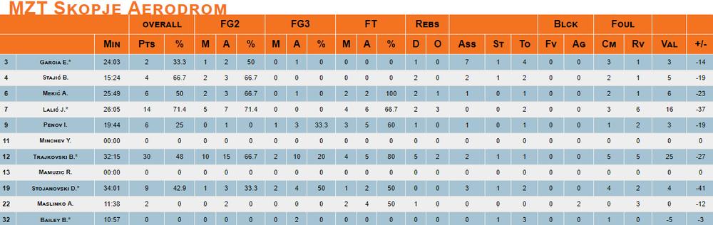 Najefikasniji u timu domaćina bio je Radičević sa 17, a u gostujućoj ekipi najviše se Trajkovski istakao i čak 30 postigao poena.