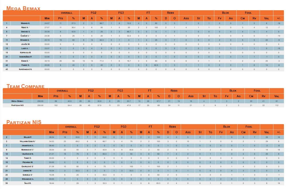Najbolji u ekipi iz Sremske Mitrovice bio je Dilan Enis sa 26 poena i po šest skokova i asistencija. Goga Bitadze imao je 19 poena, a po 11 Kostja Mušidi i Nikola Rebić.