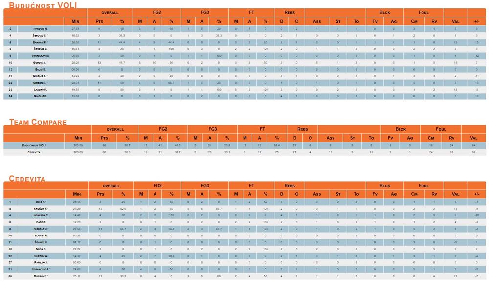 Najbolji u redovima Budućnosti bio je Nemanja Gordić sa 13 poena, dok je Cedevitu predvodio Krušlin sa 15 poena.