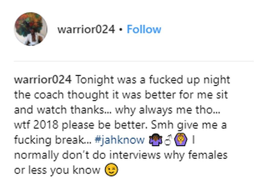 - Sve je bilo sj***no večeras. Trener je mislio da je bolje za mene da sedim i gledam, hvala. Ali zašto uvek ja?! 2018. godino, molim te budi bolja, ostavi me na miru - napisao je Semjuels na Instagramu.