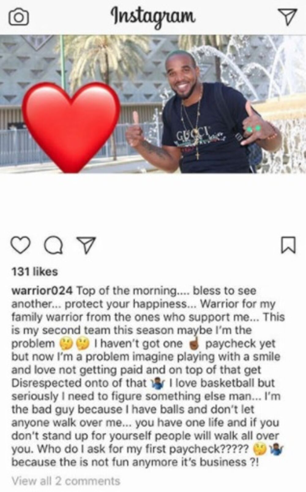 - Dobro jutro svima. Blagosloven sam jer sam dočekao još jedno. Čuvajte svoju sreću. Ratnik sam za svoju porodicu, ratnik sam za one koji me podržavaju. Ovo je moj drugi tim ove sezone, možda sam ja problem? Još nisam dobio nijednu platu, a mene nazivaju problemom. Zamislite da igrate s osmehom i srećom, a ne dobijate platu.