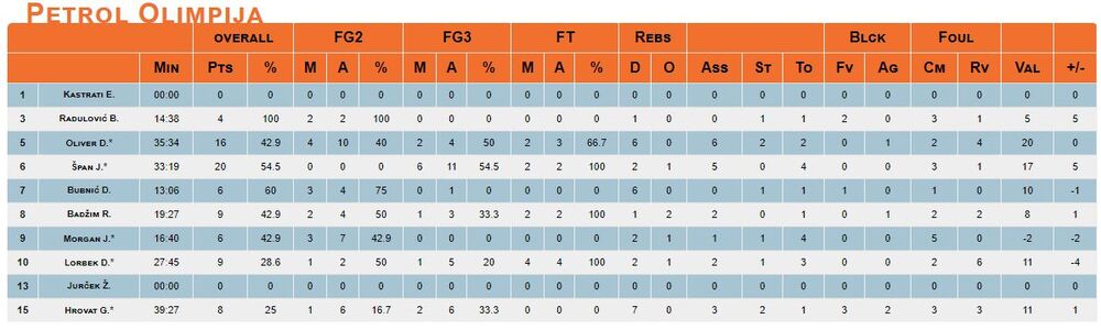 Olimpija: Oliver, Špan, Morgan, Lorbek, Hrovat.