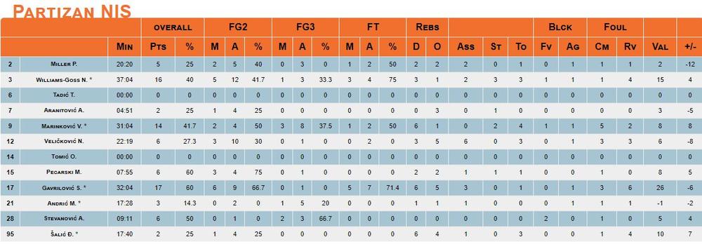 Partizan: Vilijams-Gos, Marinković, Gavrilović, Andrić, Šalić.