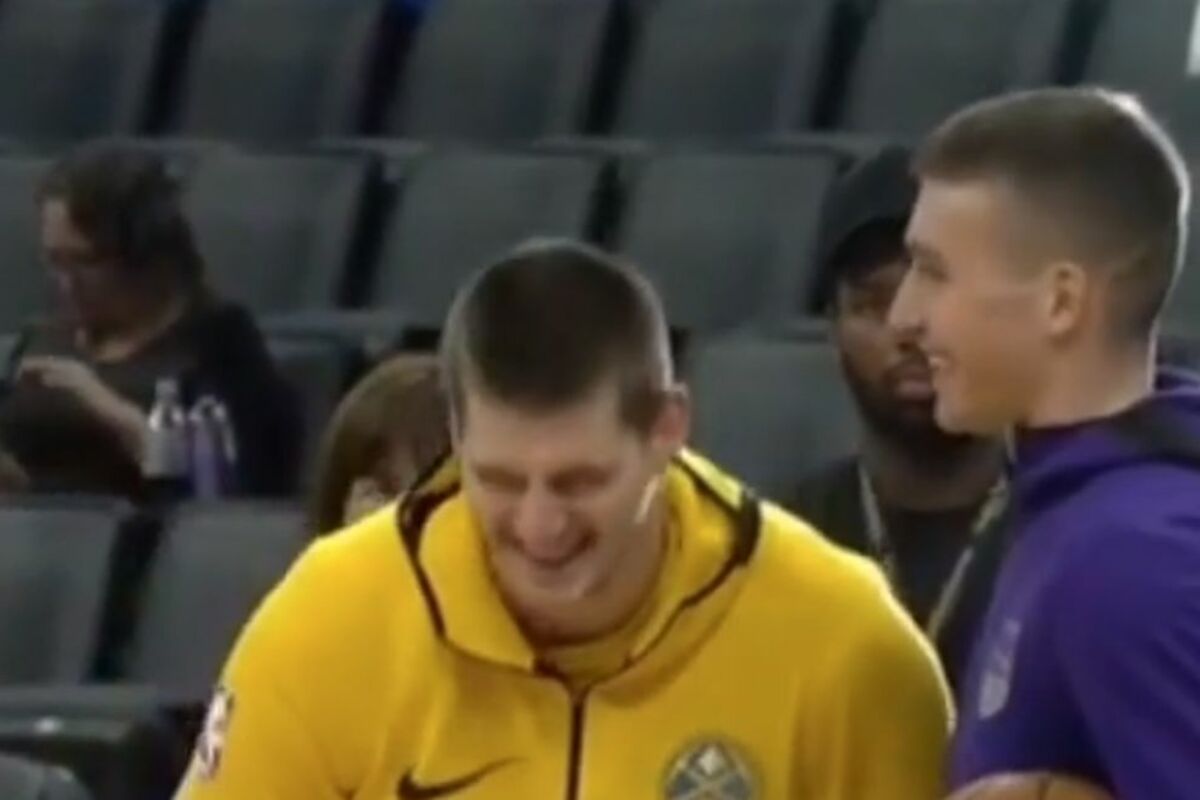NIJE MOGAO DA SE SMIRI: Jokić se zamalo bacio na parket kada mu je Bogdanović nešto rekao! (VIDEO)