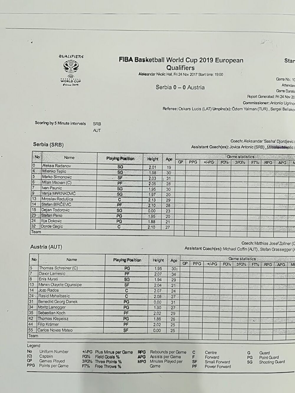 PRVO KOLO KVALIFIKACIJA ZA MUNDOBASKET