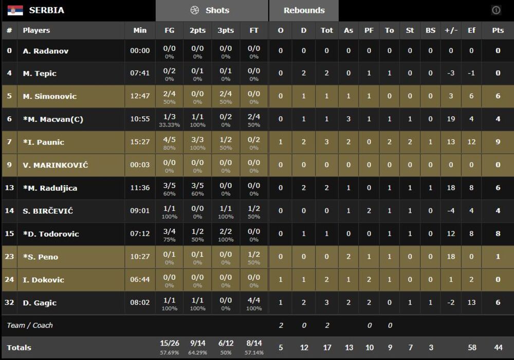 44:29 - KRAJ PRVOG POLUVREMENA! Daleko kvalitetnija Srbija ima zasluženu prednost!