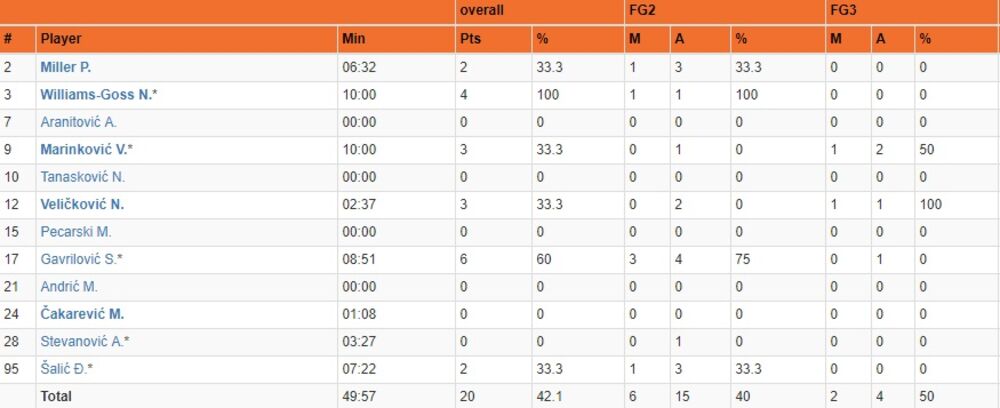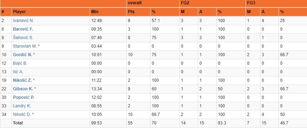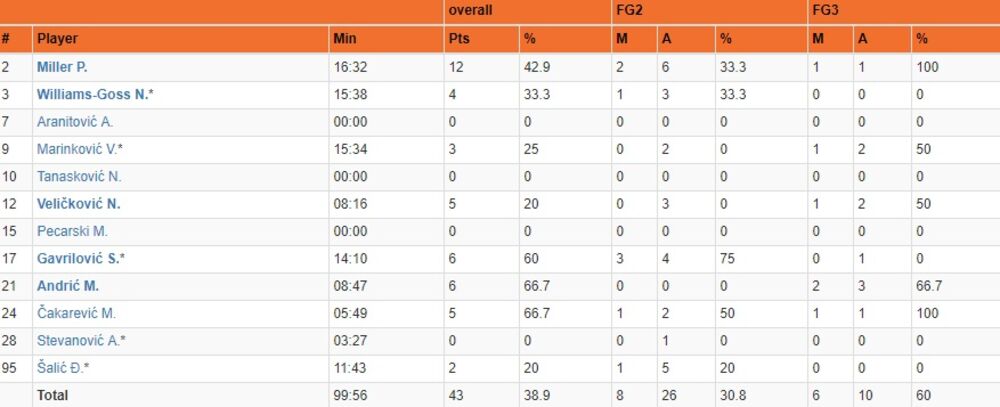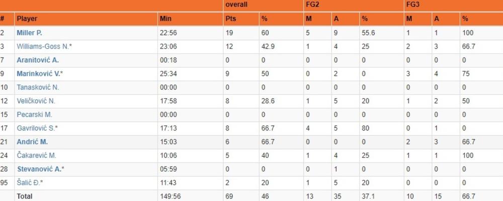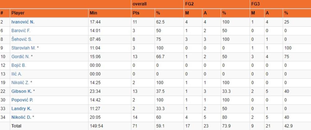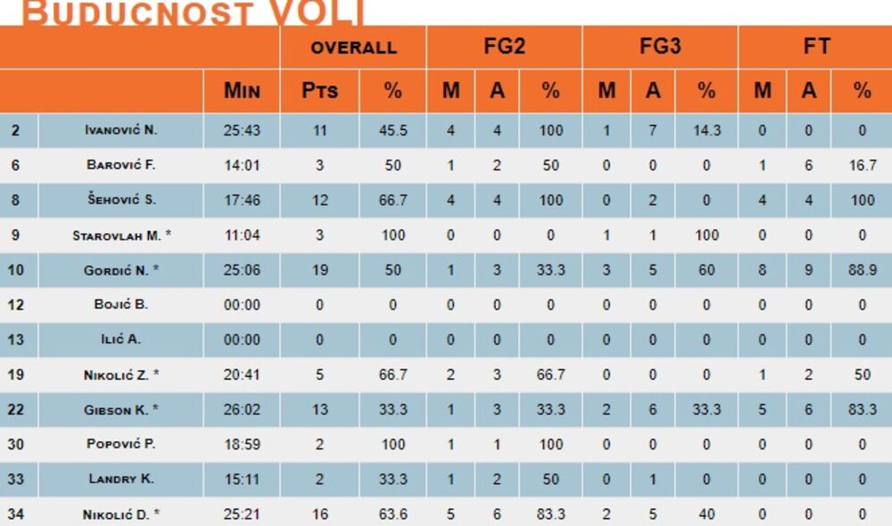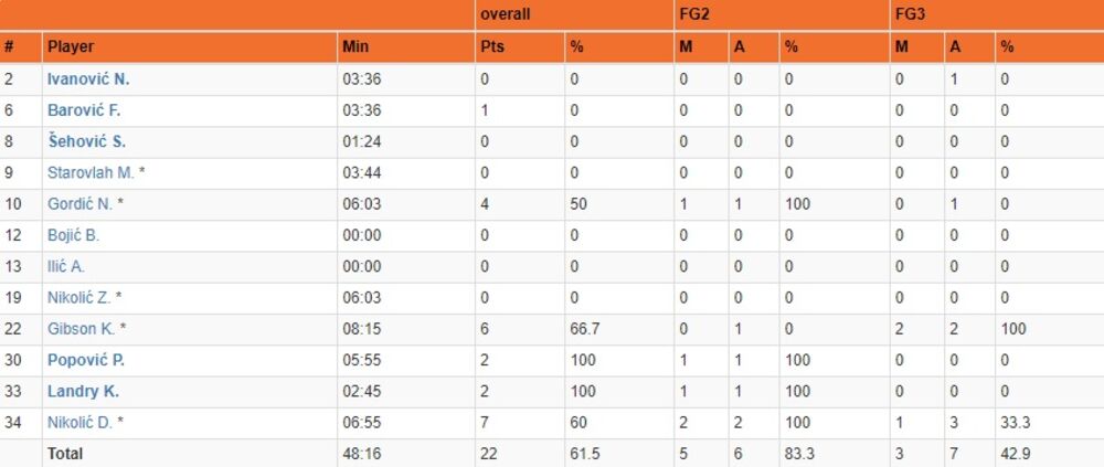 Najefikasniji u timu domaćina bili su Nikolić sa 16 i Gordić sa 19, a u gostujućoj ekipi najviše se istakao Miler i postigao 22 poena.