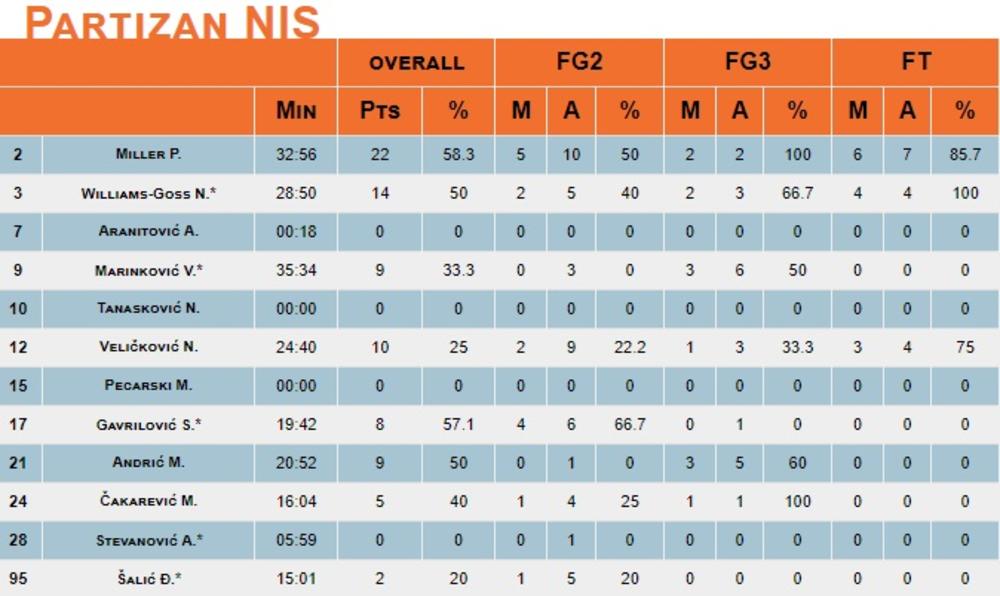 Ovo je deveta pobeda Podgoričana u sezoni, dok je ekipa Partizana i peti pretrpela poraz.