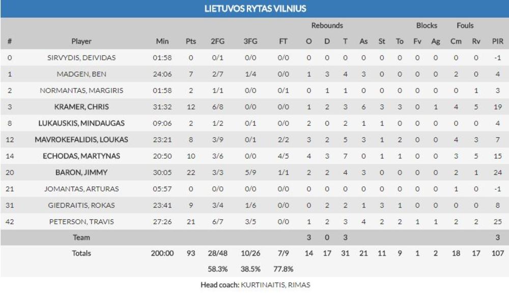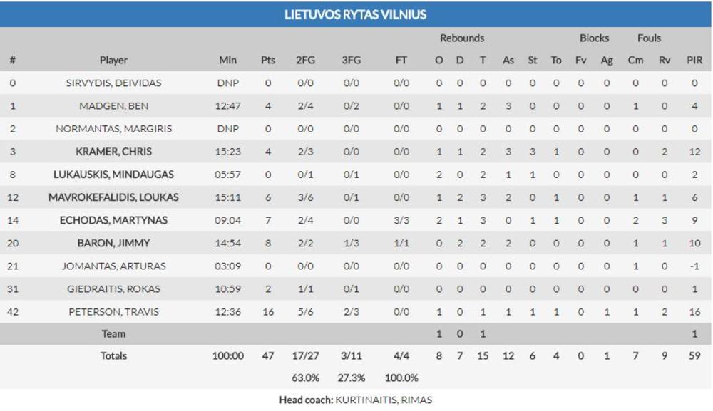 Najefikasniji u pobedničkoj ekipi bio je Džimi Baron sa 22, a njemu najbliži Trevis Piterson sa jednim ubačenim poenom manje.