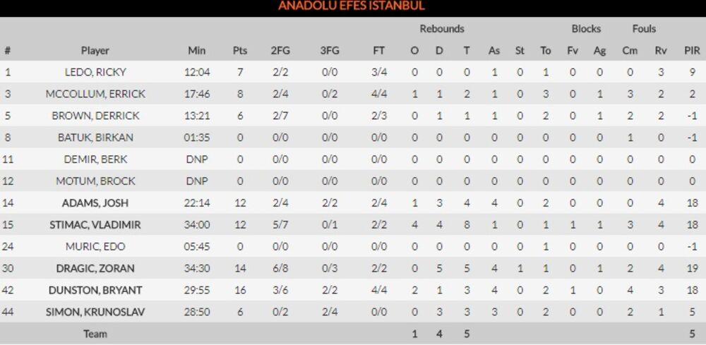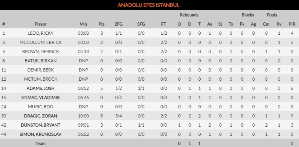 Ovo je četvrta pobeda crveno-belih u sezoni, dok je tim Efesa pretrpeo i osmi poraz.
