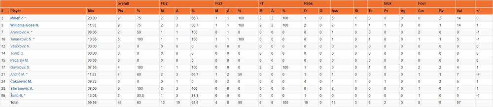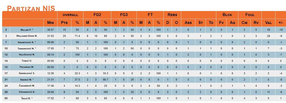 U ekipi Partizana istakao se Vilijams-Gos sa 25, dok je Patrik Miler ubacio 10 manje.