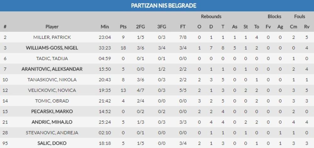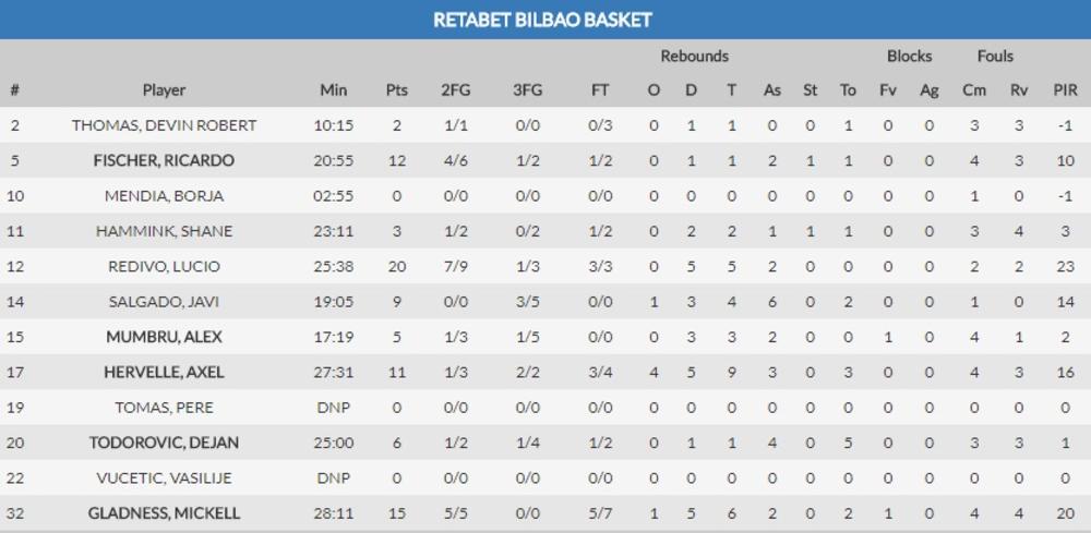 Najefikasniji u timu domaćina bio je Vilijams-Gosa sa 18 poena, a Redivo gostujućoj ekipi najviše se istakao i postigao 20 poena.