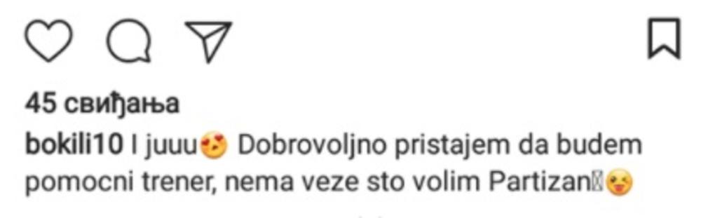 - I juuu! Dobrovoljno pristajem da budem pomoćni trener, nema veze što volim Partizan - napisala je Bojana.