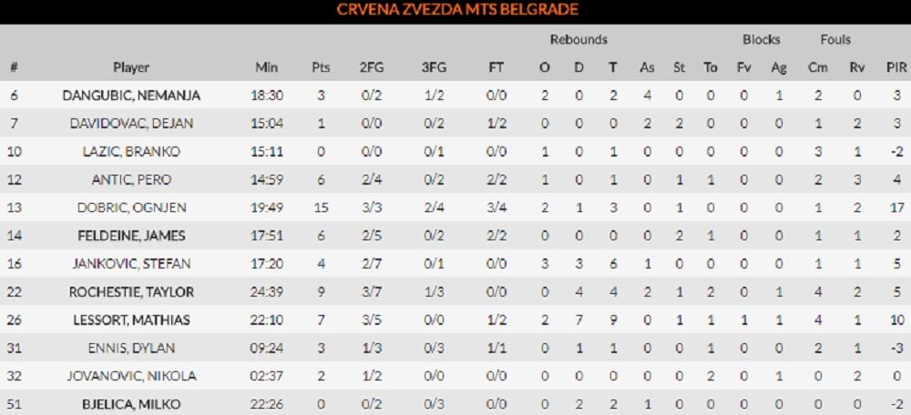Košarkaši Fenerbahčea pobedili su ekipu Crvene zvezde rezultatom 82:56 u 13. kolu Evrolige.