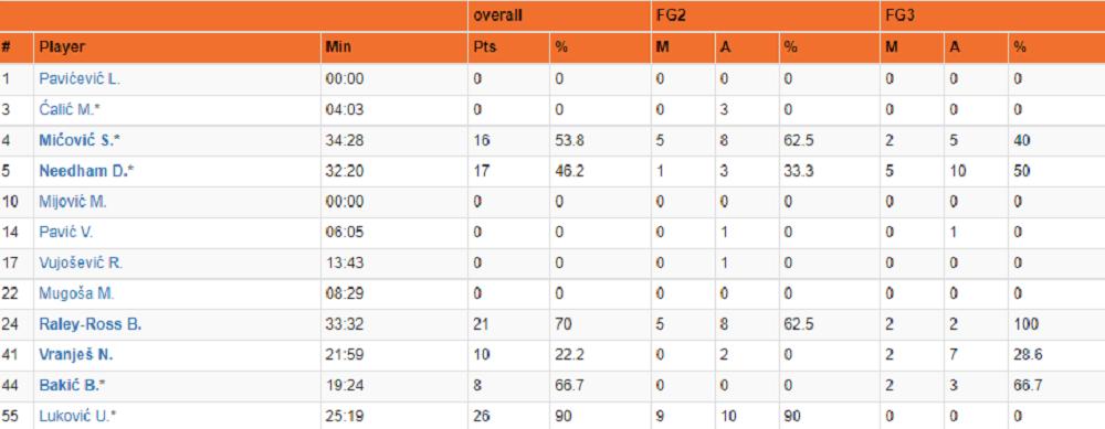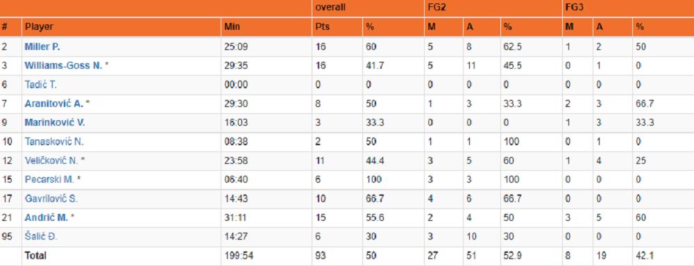 Najefikasniji u timu domaćina bili su Gos i Miler sa po 16 poena, a u gostujućoj ekipi najviše se istakao Luković i postigao čak 26 poena.