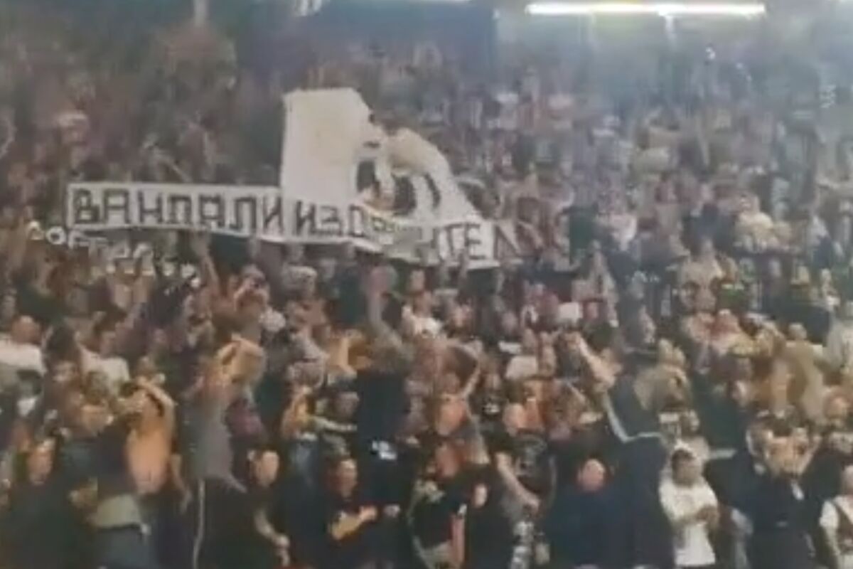 Pripadnici odmetnute frakcije navijača Partizana su u drugom poluvrmenu meča crno-belih i Mega Bemaksa istakli transparent koji je privukao dosta pažnje.