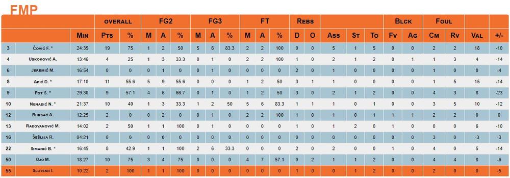 Najefikasniji kod domaćih bili su Čović sa 19, Apić sa 11, odnosno Odžo i Nenadić sa po 10 ubačenih poena. .