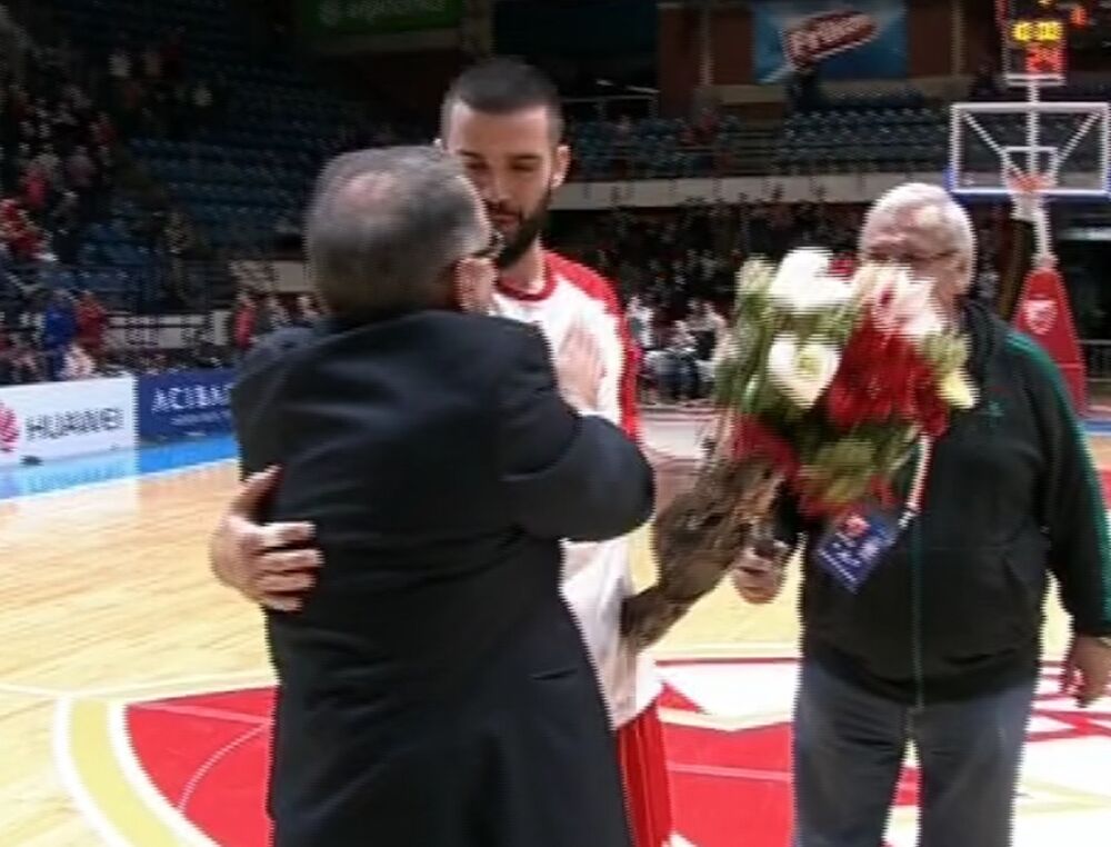17.59 - Branko Lazić je dobio cveće od predsednika kluba Nebojše Čovića.