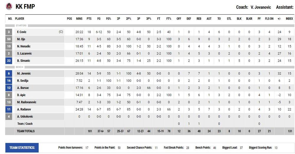 Najveću prednost FMP je imao u 29. minutu – 77:40, kada je praktično i rešeno pitanje pobednika.