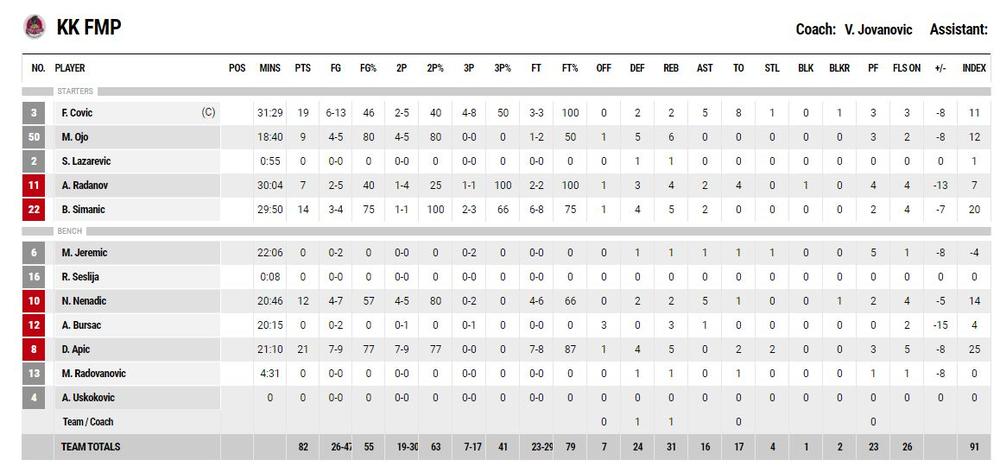 FMP je čak dobio prvu četvrtinu, u kojoj je Filip Čović dao 14 poena!