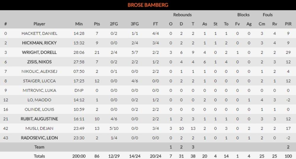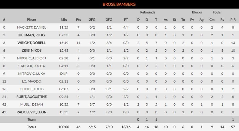 Ovo je 14 poraz ekipe sa Malog Kalemegdana dok je Bamberg zabeležio i devetu pobedu.