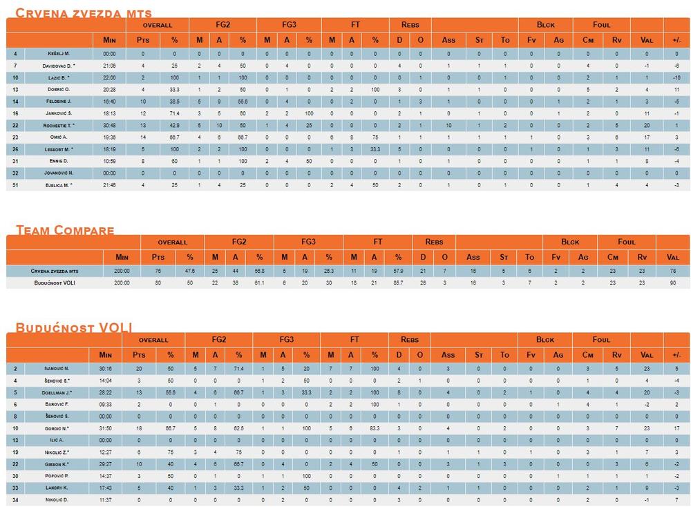 Najefikasniji kod pobednika bili su Nikola Ivanović sa 20, odnosno Gordić i Dolman sa 18 i 13 ubačenih poena.