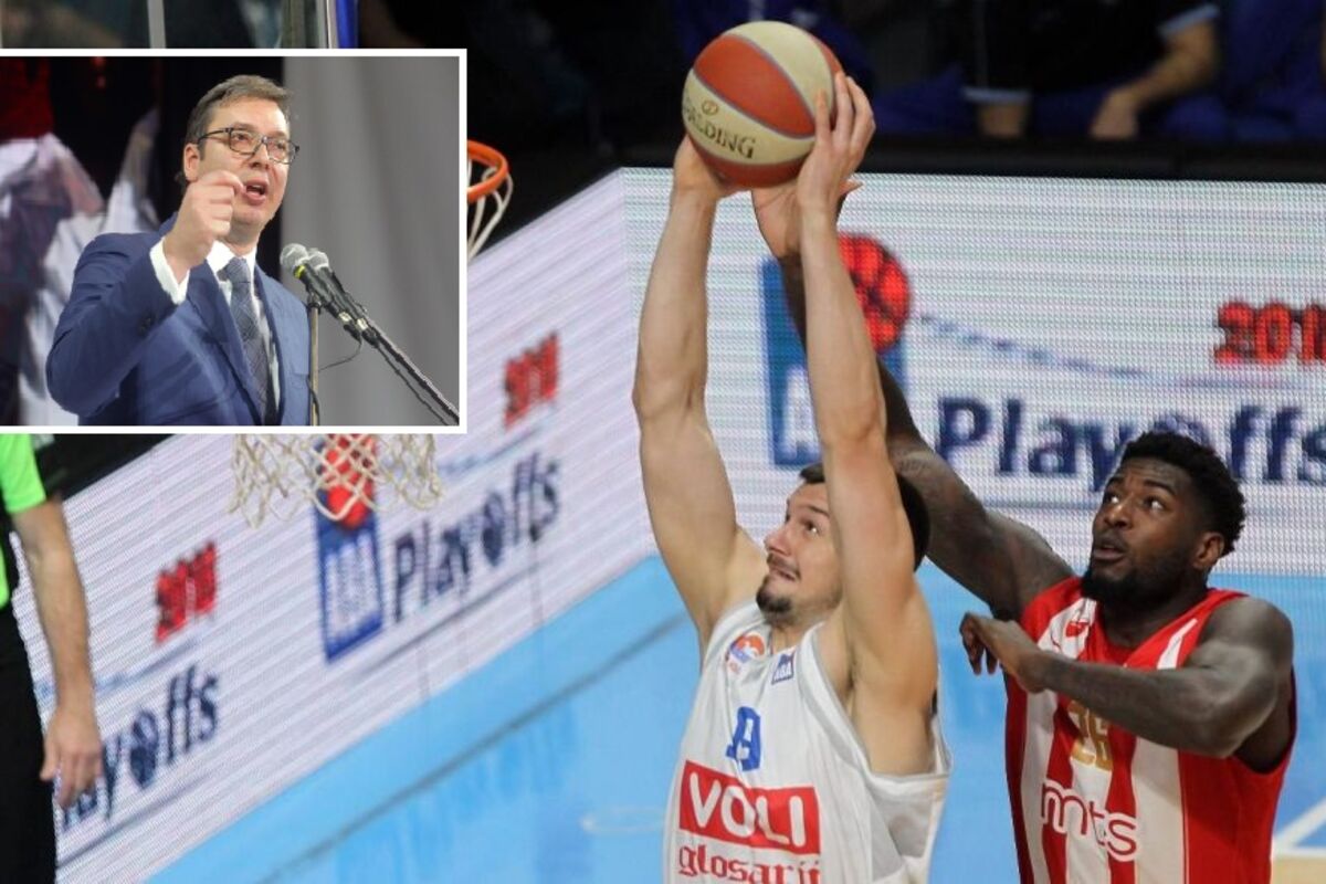 Crvena zvezda je poražena u prvoj utakmici finalne serije plej-ofa ABA lige od Budućnosti na svom terenu, a taj poraz je gledao i predsednik Srbije Aleksandar Vučić.