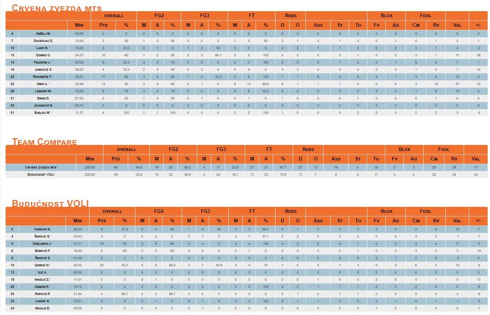 Na drugoj strani, istakao se Nemanja Gordić koji je meč završio sa 22 poena. Njega su najbolje pratili Džastin Delmen sa 10 i Nikola Ivanović sa devet poena.