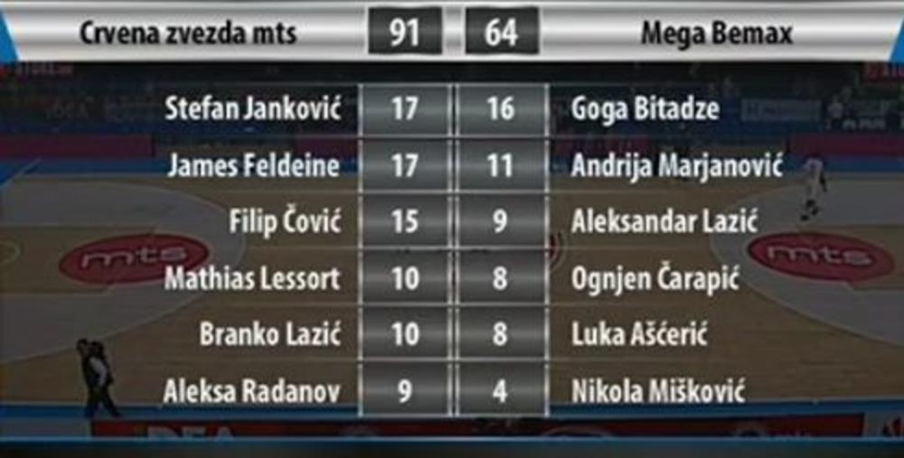 Najefikasniji u timu sa Malog Kalemegdana bili su Stefan Janković sa 17, kao i Džejms Feldin sa isto toliko ubačenih poena. Filip Čović postigao je 15, Lesor i Lazić po 10, a Aleksa Radanov 9.