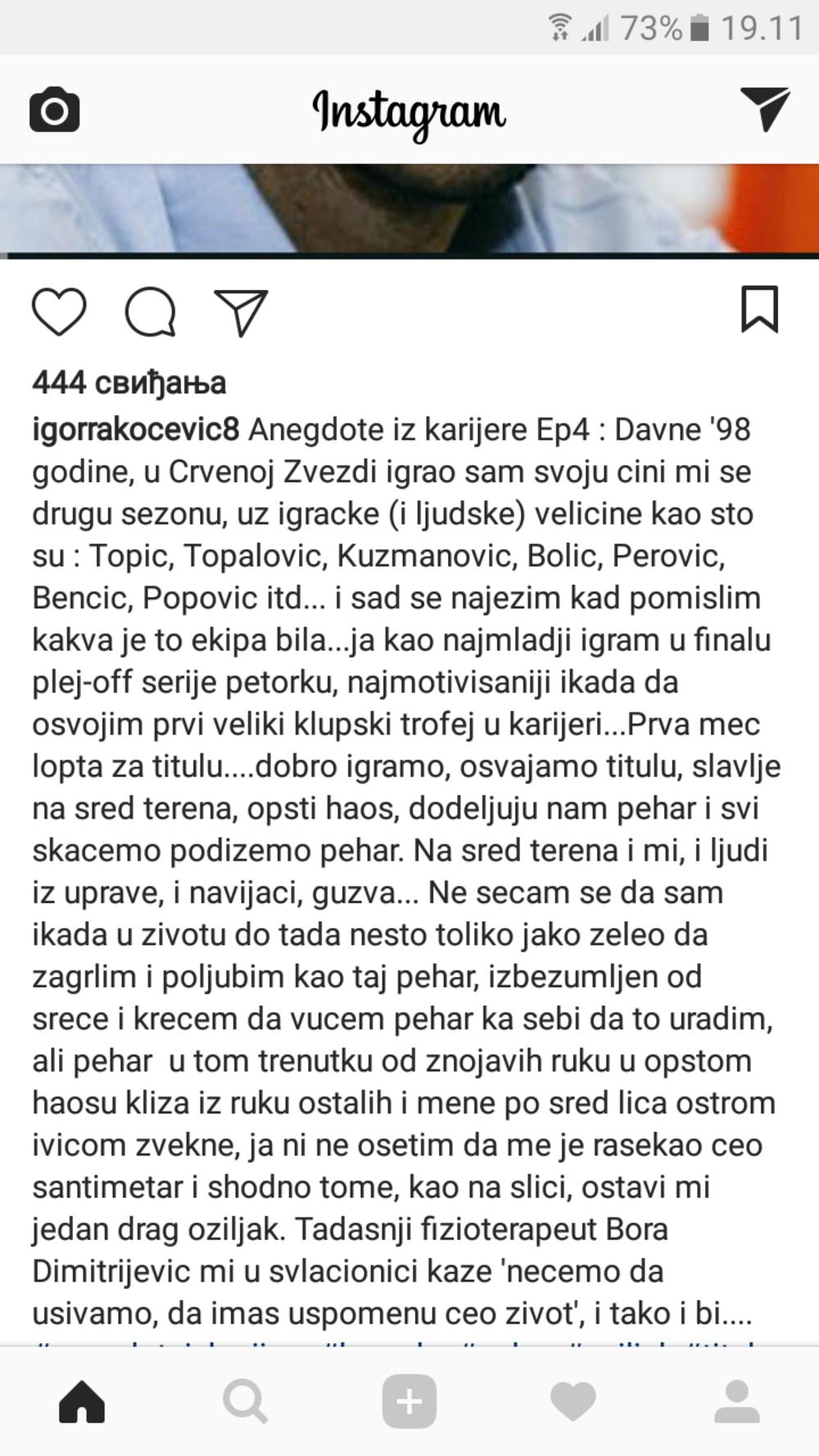 Ovoga puta obradovao je sve njegove pratioce na Instagramu pričom iz vremena dok je nastupao u svom prvom mandatu za Zvezdu sa kojom je osvojio titulu šampiona Jugoslavije u sezoni 1997/1998 posle pobede u finalu nad FMP-om.