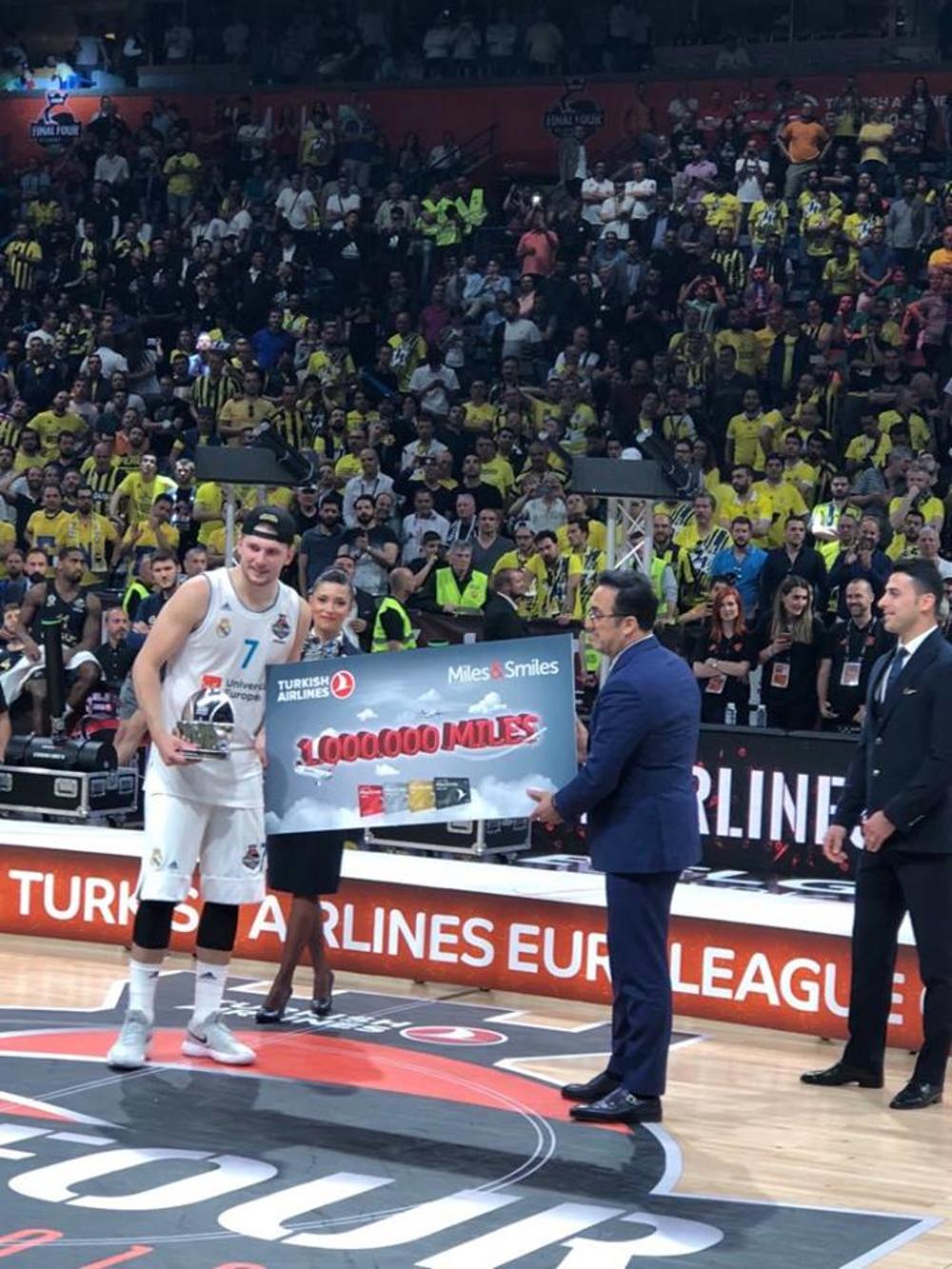 Luka Dončić ima pravo da se Turkish Airlinesom vozi besplatno narednih 1.600.000 kilometara - tj, bar nekoliko godina, a to je zaslužio tako što je postao MVP fajnal-fora Evrolige u Beogradu.