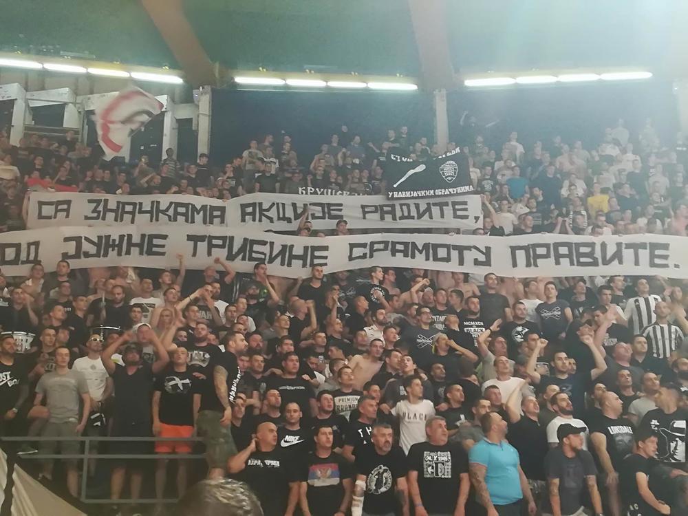 Partizanovci su smešteni na svojoj tribili izneli čak tri transparenta uoči ovog meča i time poslali jasnu poruku navijačkom svetu, kao i poruku Grobarima sa kojima su u lošim odnosima: