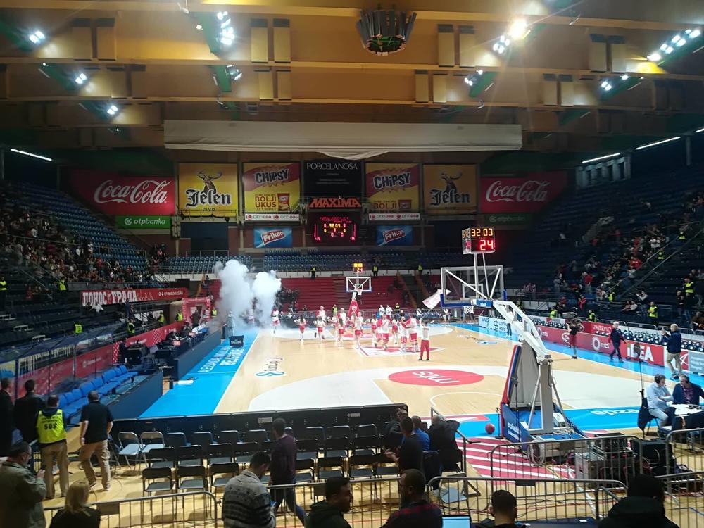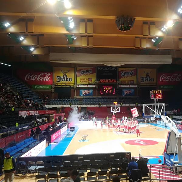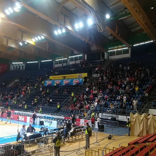 18.25 - Nešto manje od sat vremena pre početka utakmice još prilično prazna dvorana Aleksandar Nikolić, ali tek se očekuje dolazak Zvezdine publike.