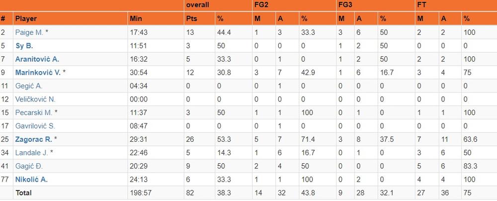 10' - Crno-beli posle prve četvrtine imaju prednost 18:16. Počeli su puleni Nenada Čanka silovito ovaj meč, napravili prednost od 7:3, ali su gosti uspeli da uhvate priključak tokom prve deonice. Pejdž je zabeležio pet poena, dok je Lapornik upisao jedan manje.