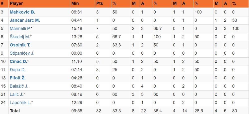 Treba napomenuti da je novi-stari košarkaš Dušan Ristić pružio odličnu partiju i meč završio sa poena. Već pomenuti Regland i Beron su navikli navijače na sjajne igre i oni su postli 10 odnosno 13 poena. Marineli je sa 15 koševa bio najraspoloženiji košarkaš Krke, a Lapornik je uspeo da ga isprati i zabeleži 10 koševa kao i Lalić.