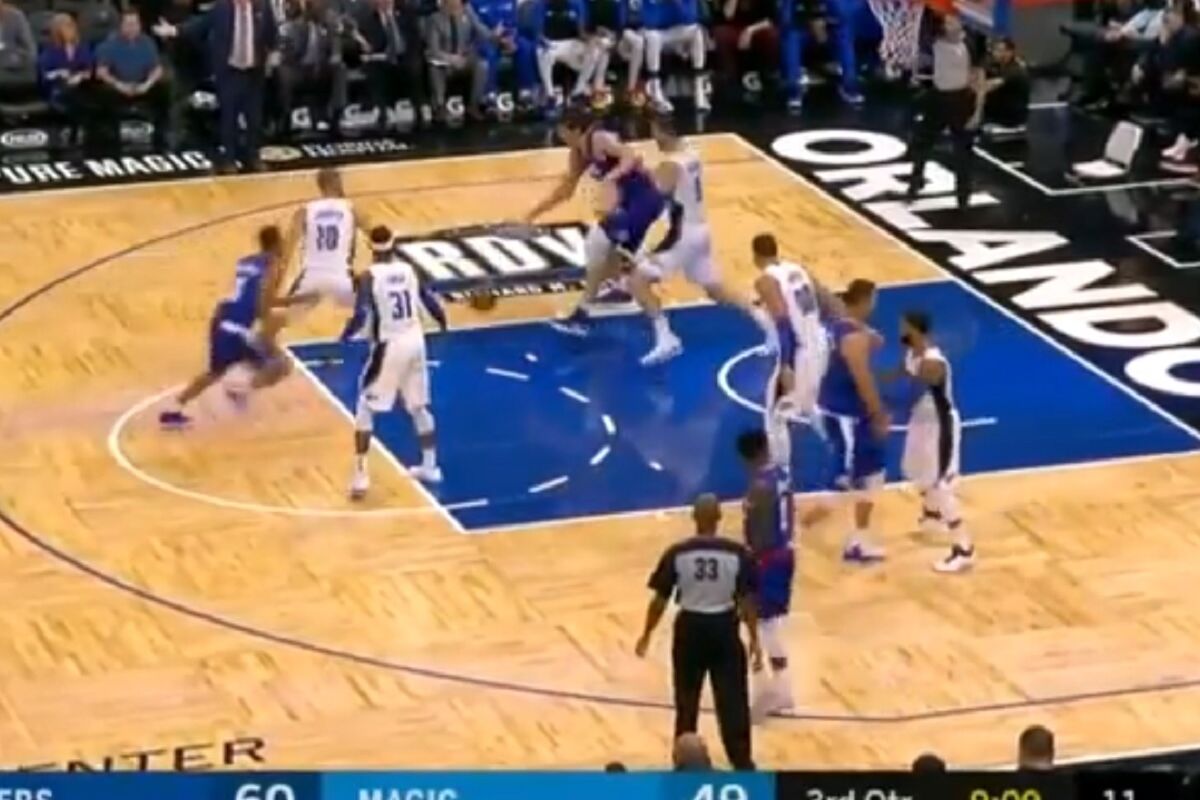 Međutim, ono o čemu cele SAD pričaju, nije njegov učinak, već sjajna asistencija, preko ramena, gotovo bez gledanja. Nikola Vučević, koji ga je čuvao, nije mogao da uradi apsolutno ništa kada je stavljen u ovakav "ringišpil"..