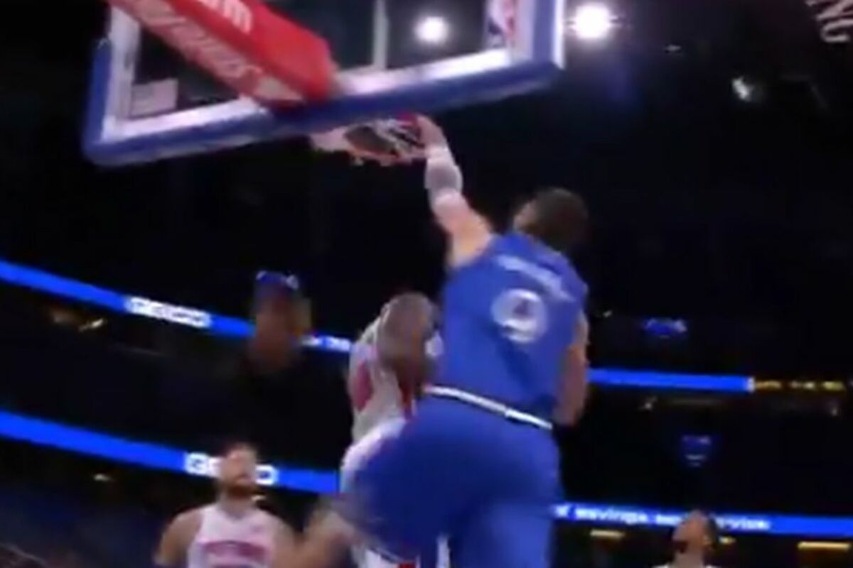 On je uzeo loptu, uspeo da izvrti kolosa iz Detroita, a onda je zakucao preko njega, ili što bi navijači rekli "posterizovao" ga je.