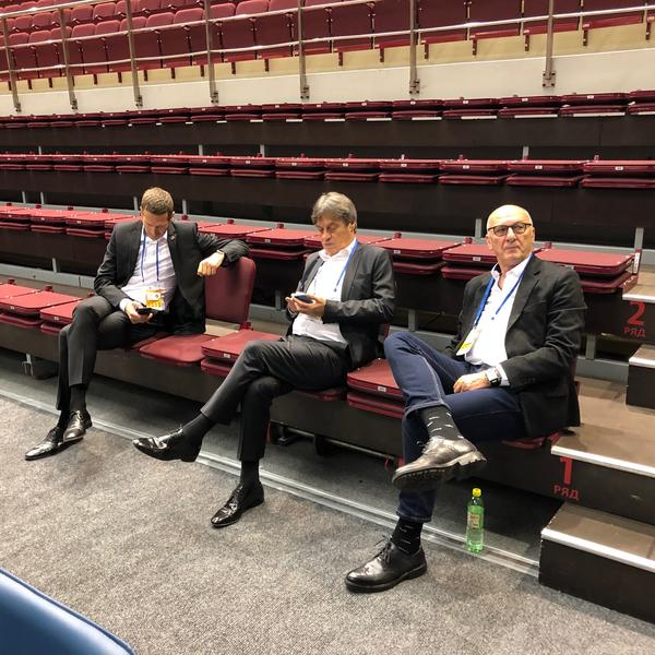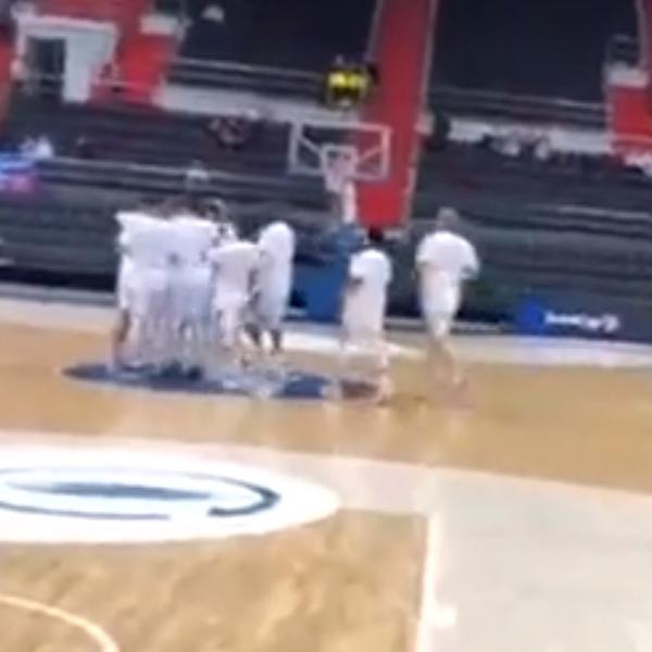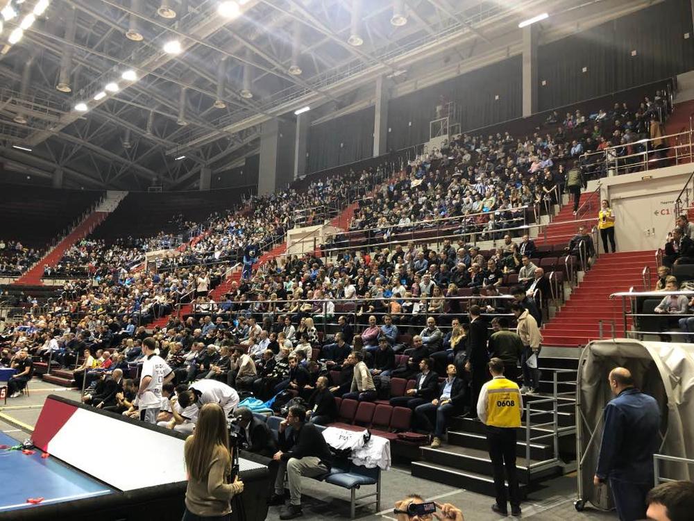 17:50 - Izlazak košarkaša na teren i zagrevanje. Na tribinama je predsednik Partizana, Ostoja Mijailović