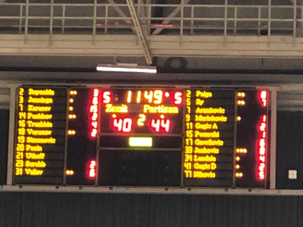 KRAJ PRVOG POLUVREMENA: Zenit - Partizan 40:44