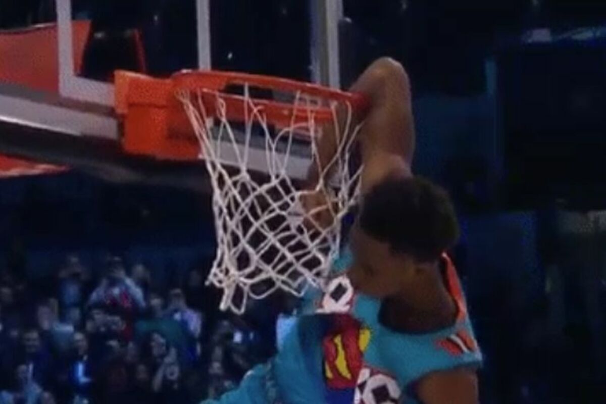 On je izveo najbolje zakucavanje večeri u prvoj rundi, kada je u dresu Supermena preletoeo Šakila O'Nila, zakucao loptu i ostao da visi sa laktom na obruču.
